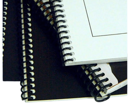 Capas Transparente com verso Preto e espiral.